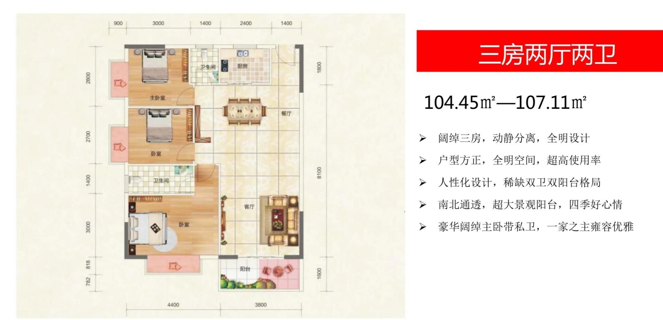 105~107平方米的三房二厅,仅40万元左右; 《可银行贷款》