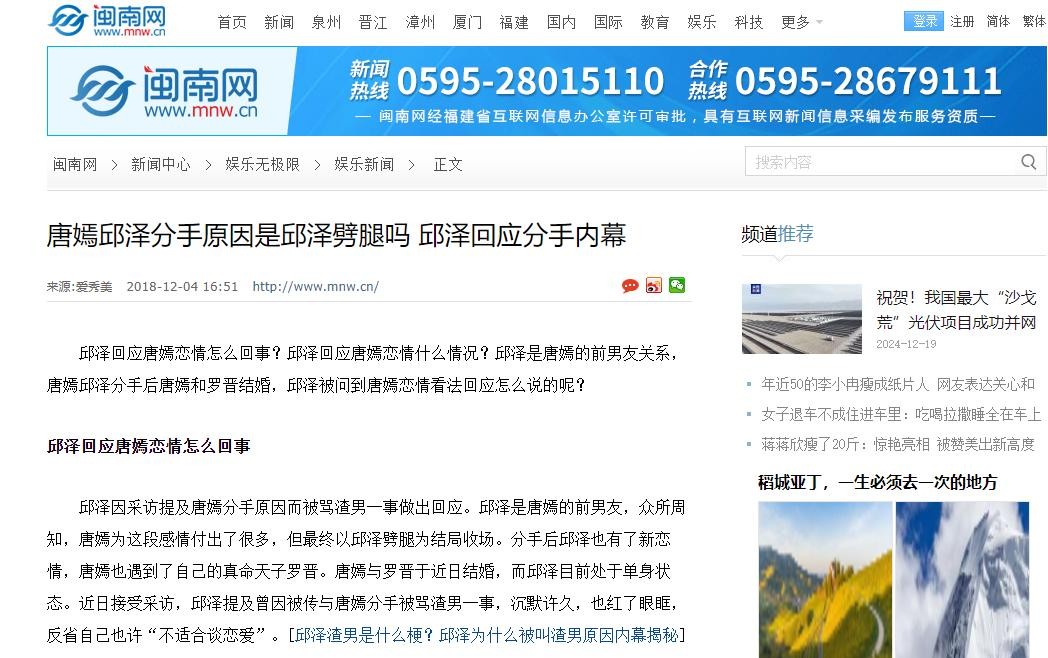 唐嫣邱泽分手原因是邱泽劈腿吗 邱泽回应分手内幕-闽南网