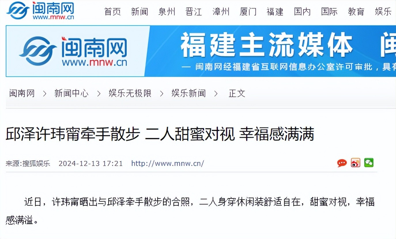 邱泽许玮甯牵手散步 二人甜蜜对视 幸福感满满-闽南网