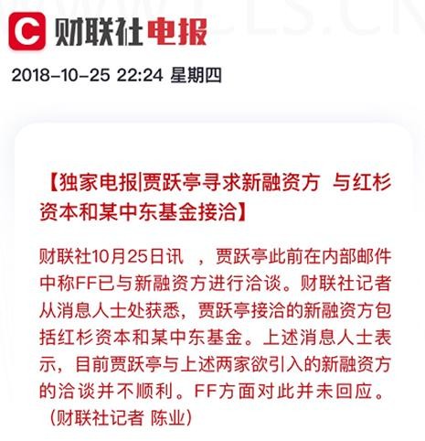 根据财联社25日电讯显示,贾跃亭新的融资方洽谈进行的并不顺利。