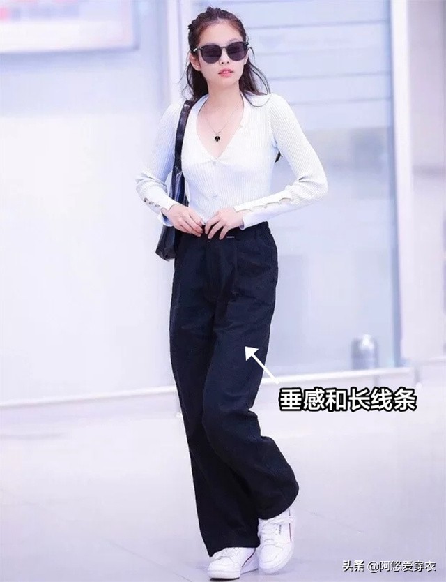 尽量选择富有垂感和呈现流畅的直线条设计的低腰裤,鞋子配上能够延长视觉的窄长型简约鞋面,不需要其他华丽的装饰,也能够穿出大长腿。