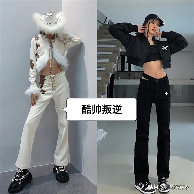 低腰裤本身的设计就不走寻常路,这就注定了它浑身上下充满叛逆不羁的气息。拿捏住这点,低腰裤走叛逆不羁的风格那可就太合适了!
