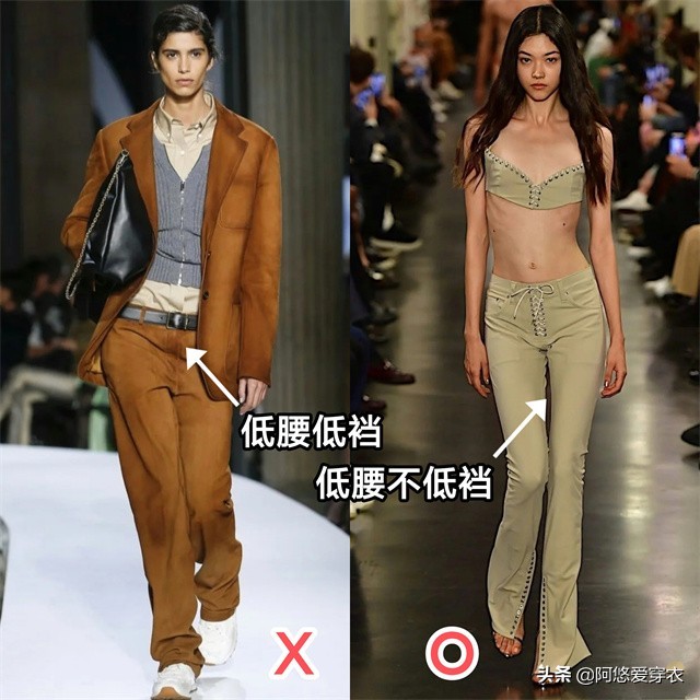 选择低腰裤,最重要的就是关于裆部和腰部的设计。低腰裤一定要“低腰不低裆”。