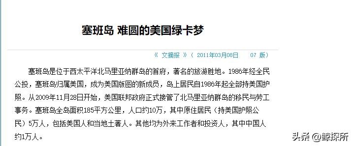 文摘报 《塞班岛 难圆的美国绿卡梦》2011年03月08日