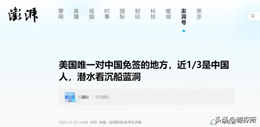 澎湃新闻 《美国唯一对中国免签的地方,近1/3是中国人,潜水看沉船蓝洞》2023-11-23