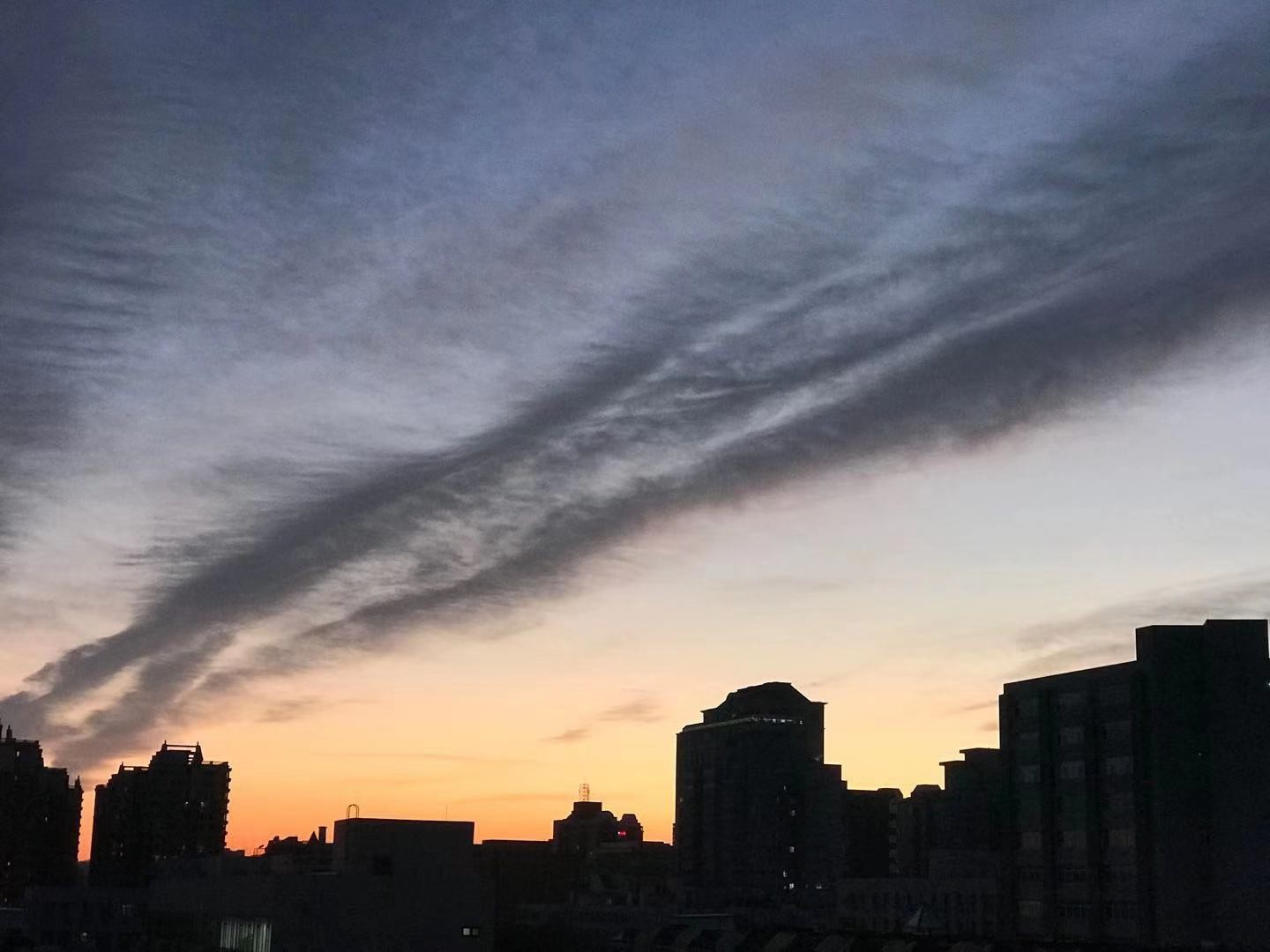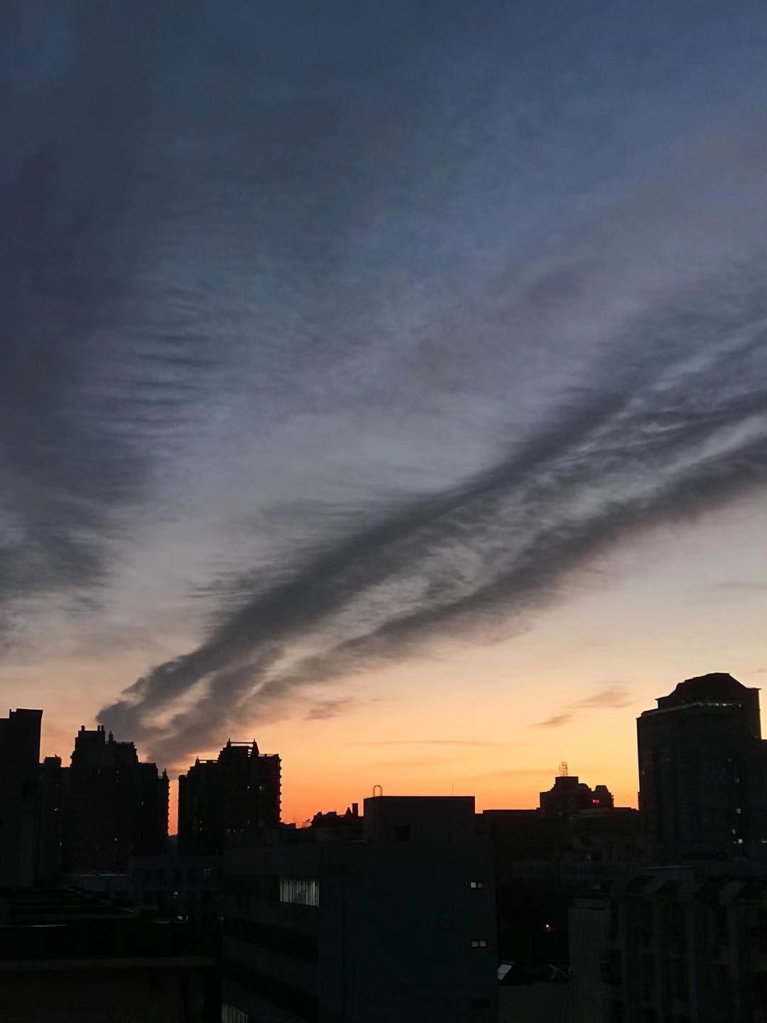 在北五环仰山桥附近,蒙蒙亮的天空就可清晰看到云朵形状。