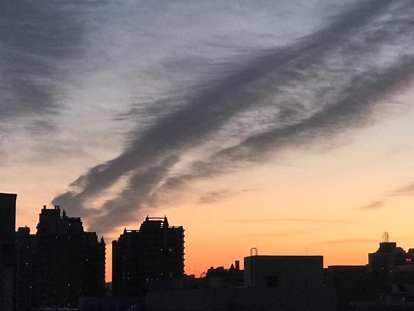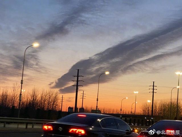 今早北京,出现龙头一样的朝霞。在望和桥附近, 朝霞映着云朵,美不胜收。