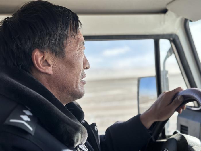 简单休整后,巡山队开始了对卓乃湖区域的日常巡护。可可西里遍布湖泊,在卓乃湖附近巡护,车辆不得不在冰冻的河滩上缓慢行进。