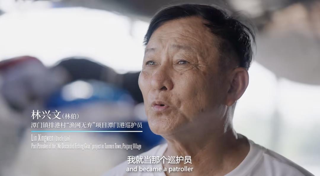 前面提到的那位潭门渔民林伯,他的父亲和爷爷都是渔民,自己也打了30多年渔,但退休上岸后,2021年他成为了巡护员,每天清晨就在潭门港海边巡逻,捡破渔网和垃圾;碰见渔民也会劝他们把渔网带回来,别丢在海里。