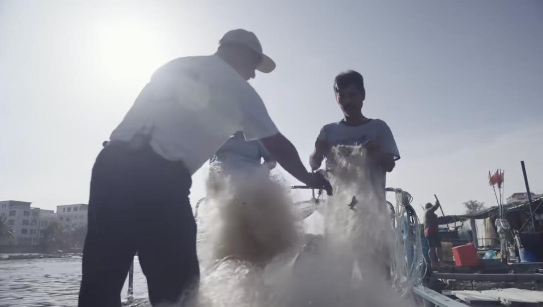 林伯在收废弃渔网|《废弃渔网大“帽”险》纪录短片