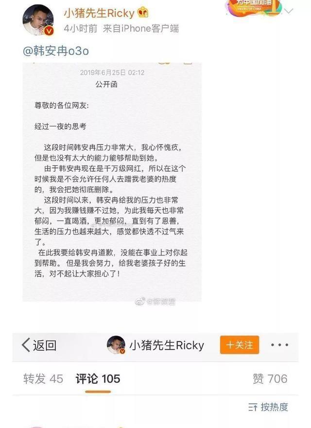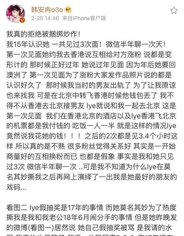 他在微博喊话韩安冉道歉后。