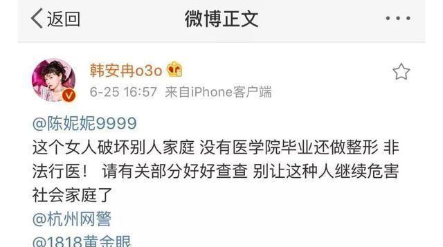 起初是韩安冉先喊话陈妮妮。