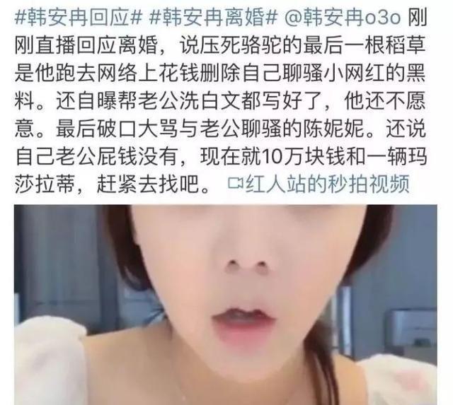 韩安冉在生气之余,也没有忘了流量的重要性!她发视频,开直播。
