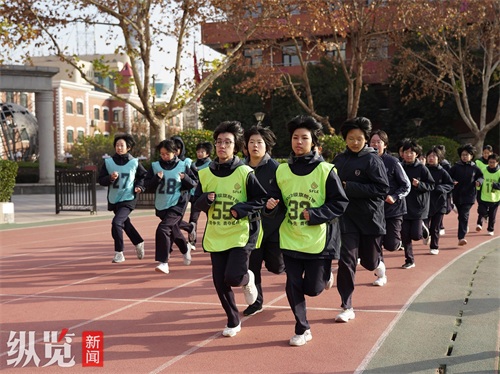 石家庄外国语教育集团初中生大课间正在跑步。