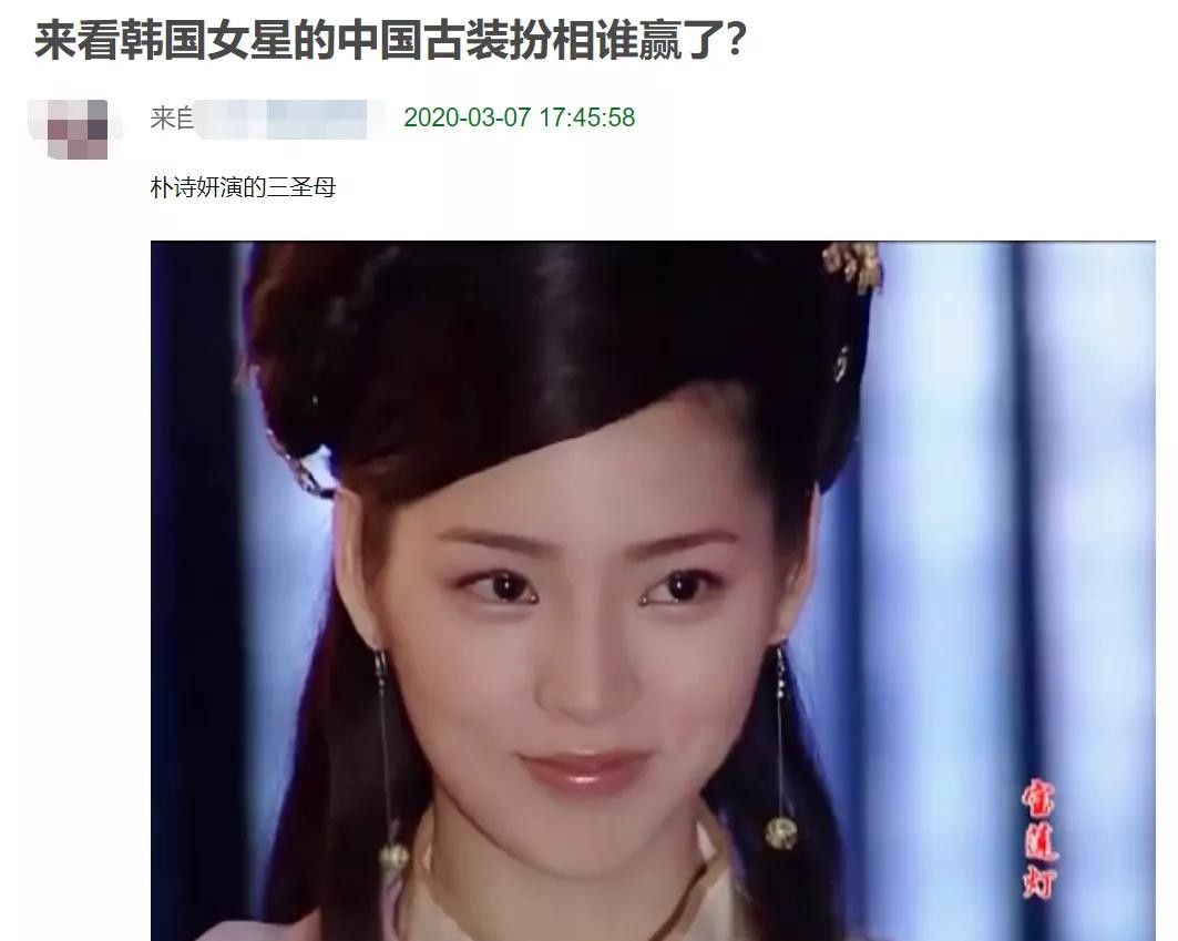 也是真的好看啊,她算是古装扮相不违和的韩国女星了。直到今天,任何一个关于中国古装扮相的话题里,都必有她演的三圣母。