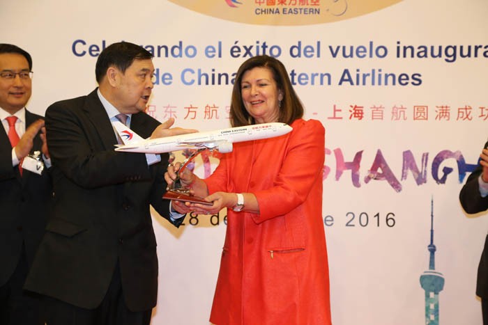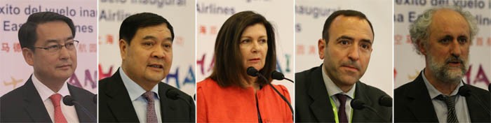 中国东方航空集团副总经理田留文表示,欧洲有着厚重的历史、灿烂的文化和迷人的风光,而西班牙正是其中一颗最为璀璨的明珠,是广大中国旅客心中的向往之地;中国是东方的文明古国,是最具活力、最具潜力的发展中国家。中国与西班牙之间发展商贸往来、旅游合作的潜力巨大,前景光明。他相信,东航上海至马德里航线必将成为两国之间一条友谊之桥、合作之桥、发展之桥。