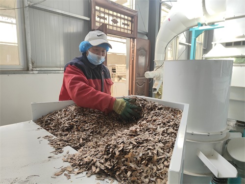 陕西红宝枫生物科技有限公司员工在进行元宝枫翅果(种子)脱粒前的准备工作(2025年2月25日摄)。新华社记者 姚友明 摄