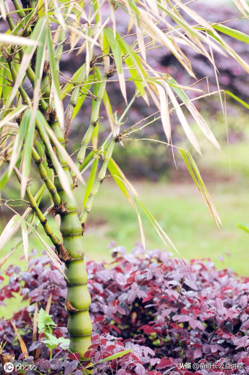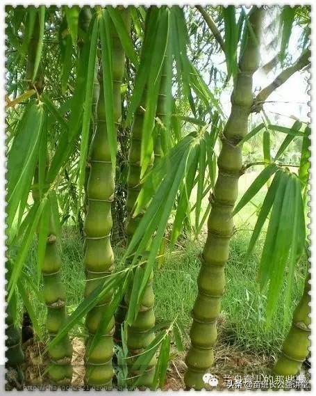 繁殖方法。佛肚竹繁殖一般采用分株和扦插。生长良好的佛肚竹,能在春末秋初分别萌发出两次新竹;春末夏初萌发的竹,竹节间隆起膨大,而秋发竹,竹节间大多不膨大,并且节间长,一般不留。但也可用来留作母株,分株繁殖后长出的新竹,仍能隆起。佛肚竹新老株呈丛状生长,每年3-5月间气温回升后,新笋萌发前将大丛中1-2年生的嫩秆从基部带蔸砍下,浸入清水24小时,使竹秆吸足水分,剪出大部分叶片,栽植后即可成活,当年或次年可供观赏并萌发出新笋。