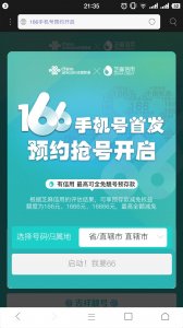 - 166号段正式开始预约 今日联通166号段正式开始预约,仅免预存号码费。具体套餐1月8日公布。 单独166开头,联通官网后缀...